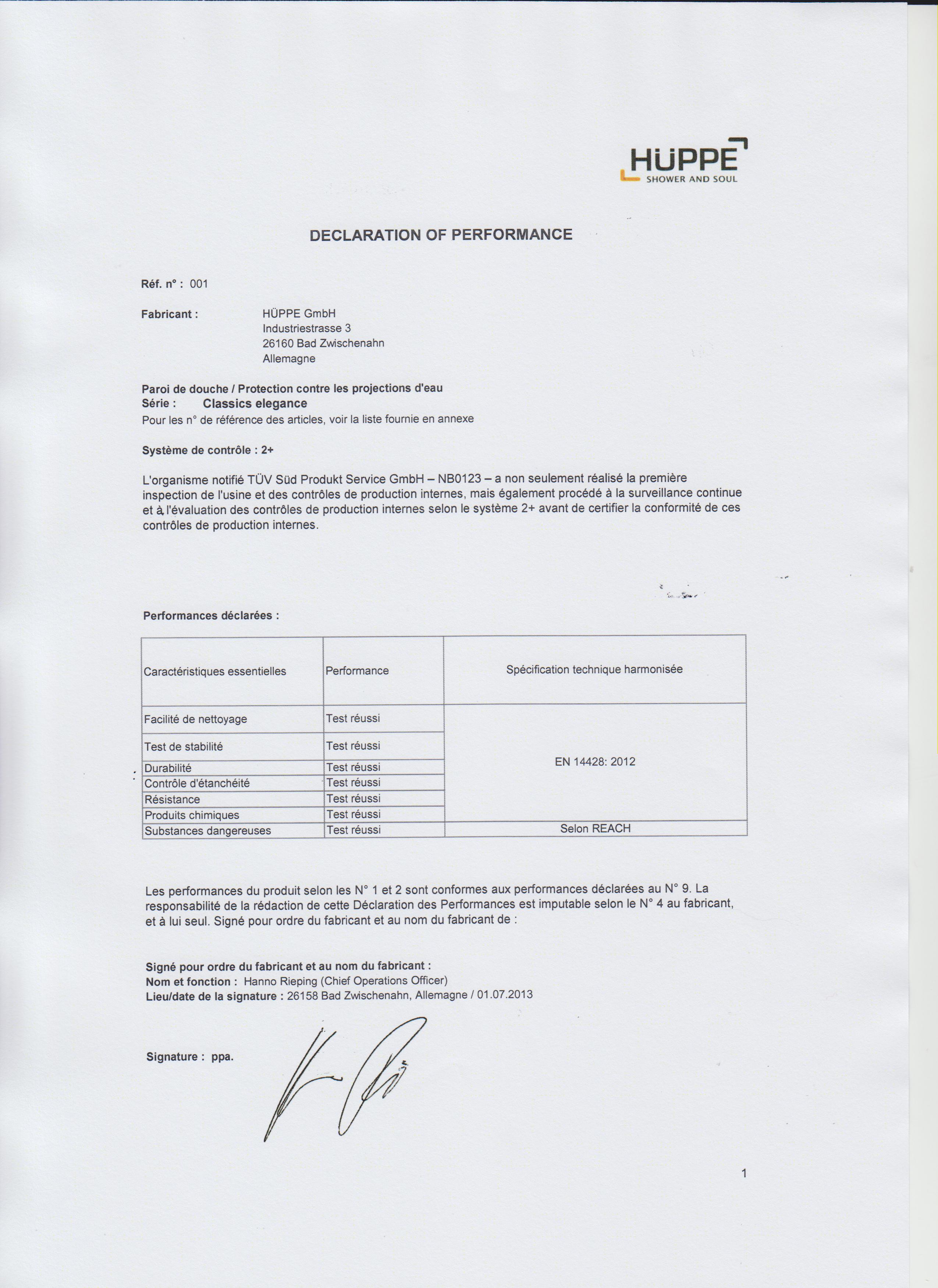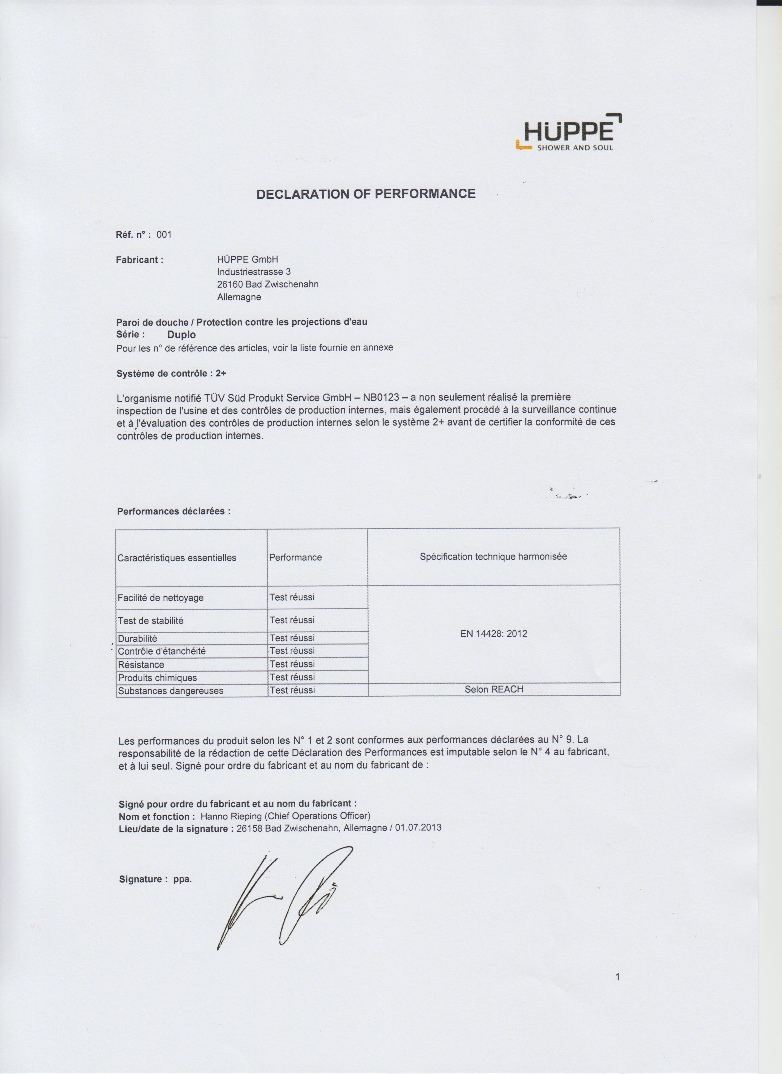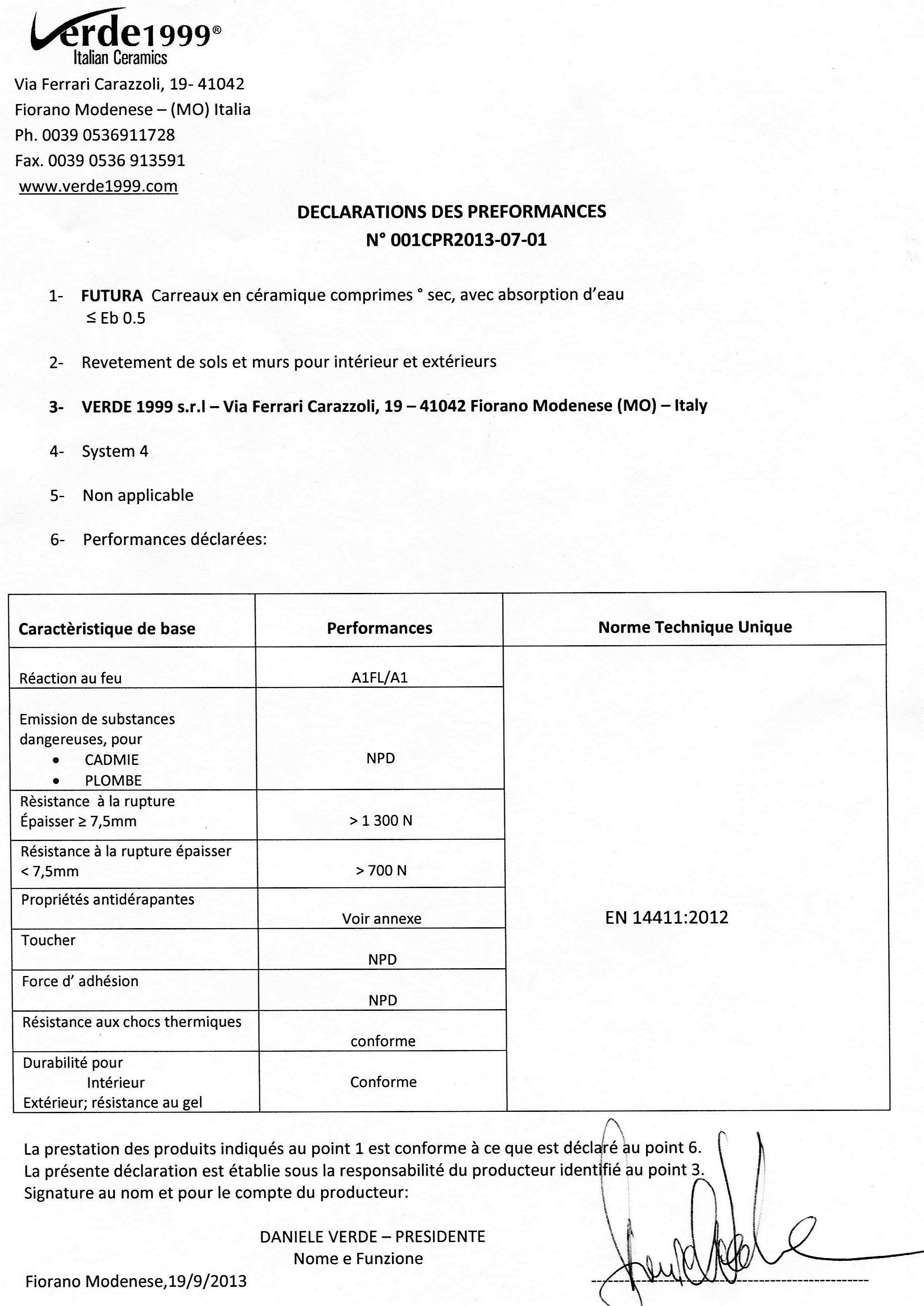 Cette " Déclaration des performances " détaille toutes les caractéristiques et performances relatives aux exigences essentielles stipulées dans Règlement de Produits de Construction.